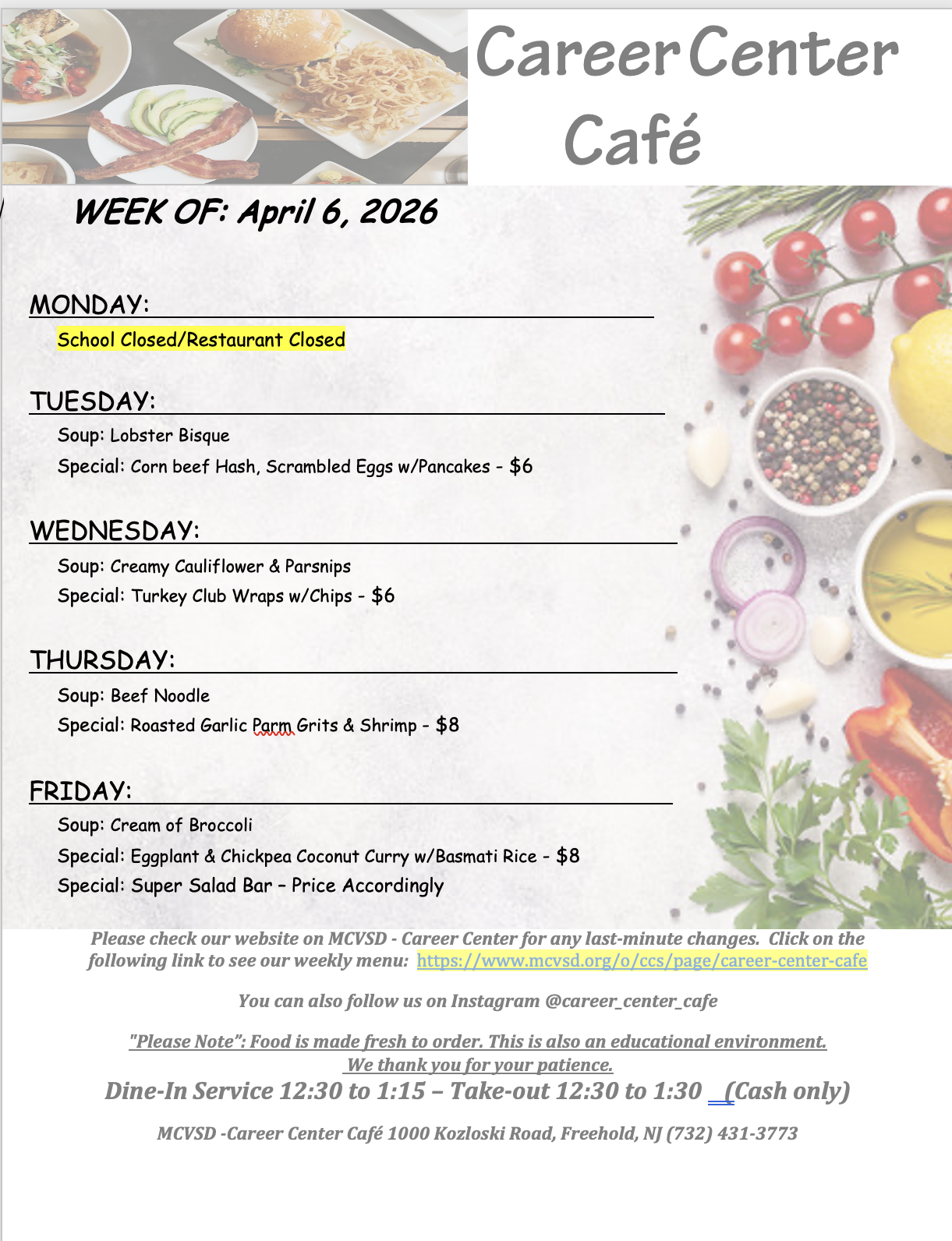 Cafe Menu