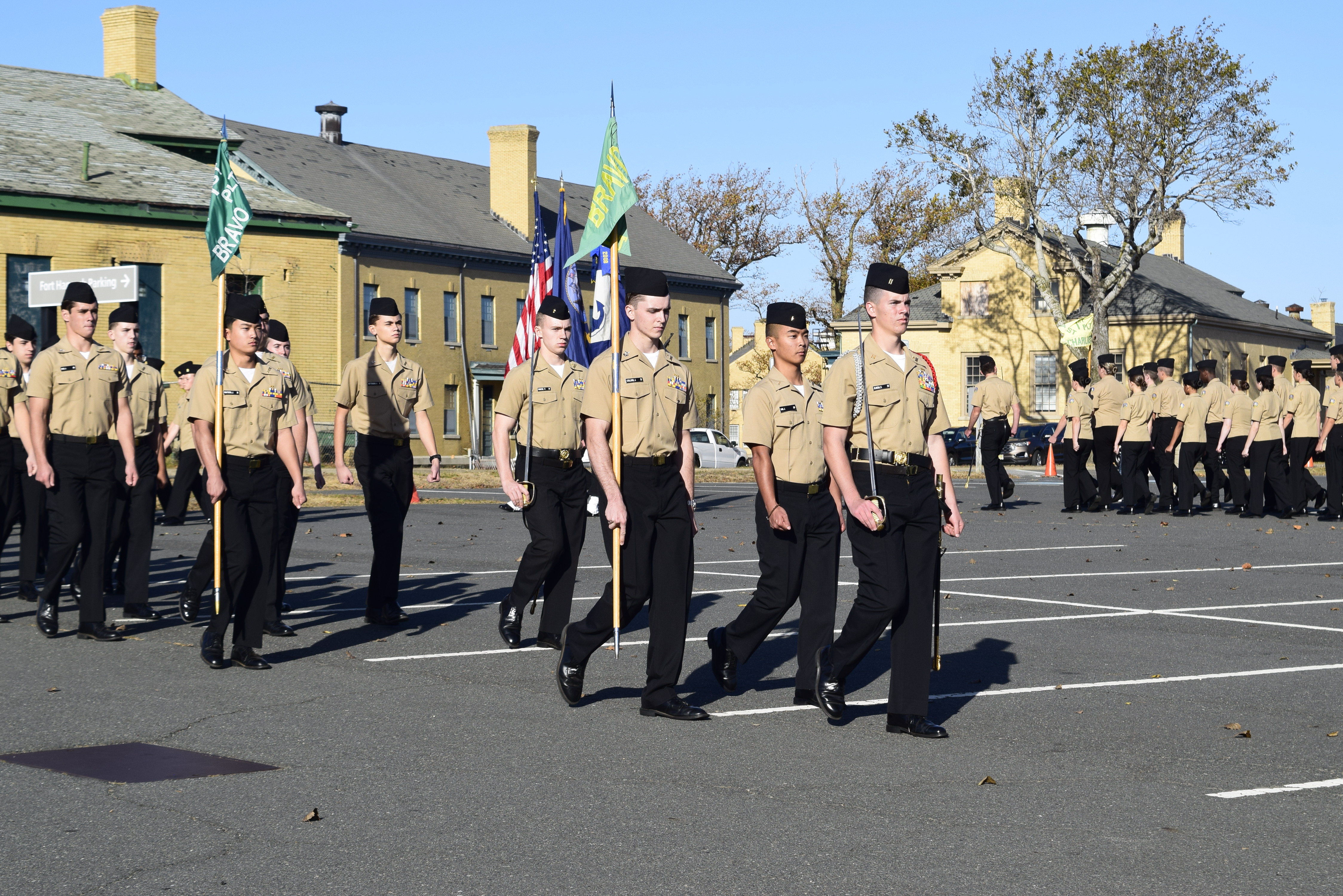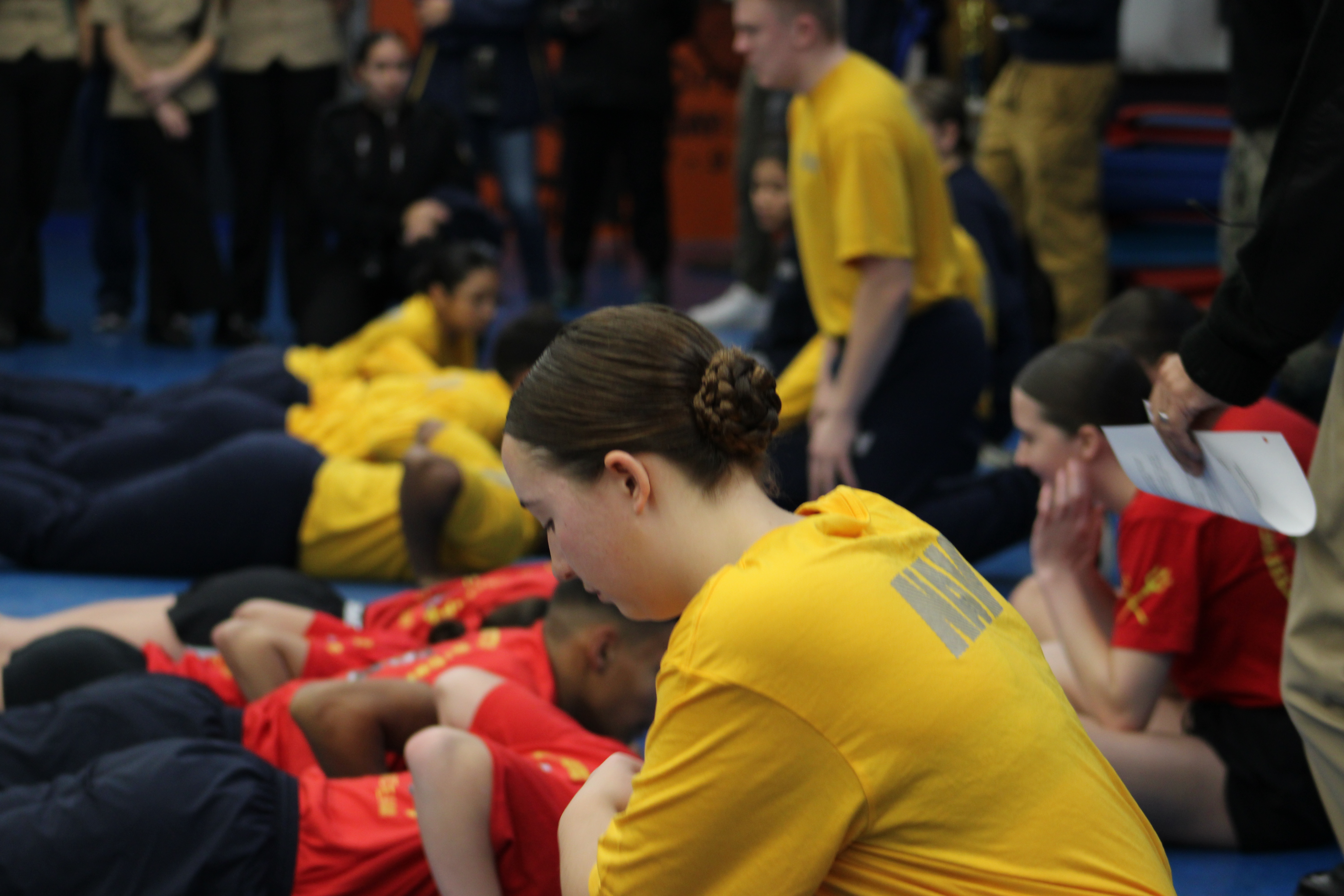 A Drill Meet is a competition where NJROTC units showcase their teamwork, leadership, precision, and discipline through various drill routines, also known as cards. Cadets will compete in unarmed regulation and exhibition, armed regulation and exhibition, color guard, and personal inspection. At Drill Meet, there are also other categories to compete in, such as Academics, Athletics, and, at times, Orienteering. These meets gather cadets to strengthen their leadership and teamwork skills and to teach them to take pride in their unit's representation.