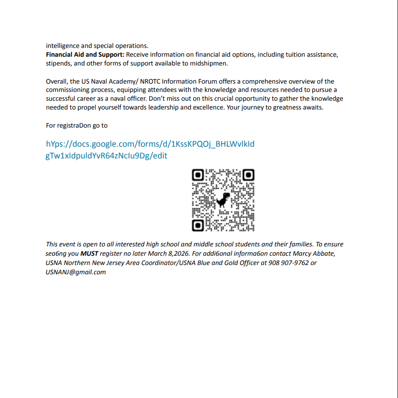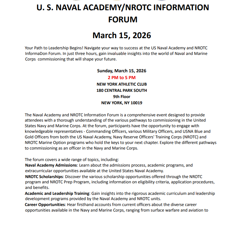 Attached is the information for a U.S. Naval Academy/NROTC Forum, which is an excellent opportunity for cadets interested in the
